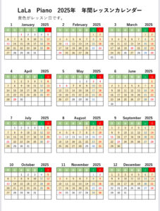 年間レッスンカレンダー|熊野町ピアノ教室 ララピアノ