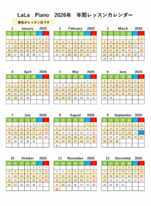 年間レッスンカレンダー|熊野町ピアノ教室 ララピアノ