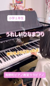 【熊野町ピアノ教室】小学1年生の生徒さん「うれしいひなまつり」すぐ弾けるようになりました。